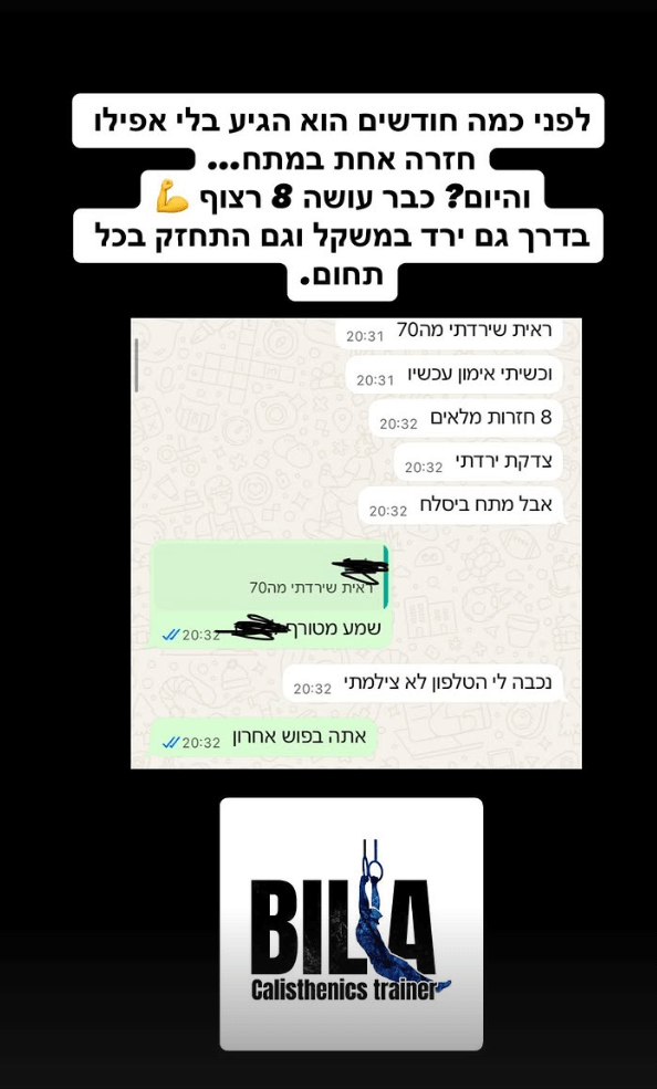מתאמן בתחום הקליסטניקס מגיל 16 ואני בכנות חושב, שאני חייב לתחום הזה את חיי.